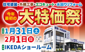 【1/31(土)・2/1(日)】今年最初の「大特価祭」開催!IKEDAショールームで相談無料